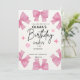 Célébrez en style avec cette adorable invitation de fête d'anniversaire arc rose! Doté de jolies rubans roses peints à la main et de polices joueuses, il est l'invitation parfait pour le bain d'anniversaire d'une fille. Entièrement personnalisable avec nom, date, heure et emplacement.