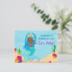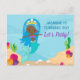 Rejoignez-nous sous la mer pour une fête d'anniversaire enfantine et fantaisiste pour une petite fille afro-américaine qui adore les sirènes aux cheveux violets. Ces cartes d'invitation de fête adorables présentent une sirène noire aux cheveux bleus qui nage autour du beau corail de l'océan. Un thème de fête dans une piscine pour enfants cool avec de l'eau bleue profonde.