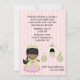 Invitation à la fête d'anniversaire de la princesse de la douce fille faite en rose et vert. Graphiques d'une mignonne fille à la peau foncée vêtue comme une princesse à côté d'un joli entraîneur citrouille, avec un arrière - plan rayé rose et blanc. Le texte gris foncé est entièrement personnalisable pour personnaliser pour le grand jour de votre fille.