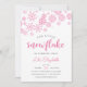 Brrr ! Des invitations chic et givrées pour les anniversaires d'hiver sont accompagnées d'une bordure supérieure de flocons de neige roses, avec "notre petit flocon de neige tourne [âge]" en lettres rose et gris foncé. Personnalisez avec les détails de la fête d'anniversaire de votre petite fille sous les champs modèles. Cartes inversées à rose pastel solide.