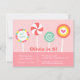 Cette invitation à la fête d'anniversaire moderne, contemporaine et colorée à la sucrerie est un bon début de fête ! Il possède des bonbons de lollipop de différentes couleurs vives et des motifs comme les tourbillons. Il y a quelque chose de si gai avec des bonbons et des bonbons ! Un arrière - plan rose pastel et un motif pois sur la page inverse en font un endroit idéal pour les filles d'anniversaire. Personnalisez-vous facilement avec les détails de votre fête.