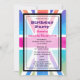Invitation à la fête d'anniversaire. Cool à l'aquarelle design du drapeau britannique / prise union. Les aquarelles lumineuses et vives comprennent le rose, le violet, le bleu, le turquoise et l'orange. Les couleurs se mélangent et se mélangent pour créer des arêtes douces avec un effet de nuage. Le design a un look unique et un flair artistique.