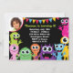 Cette invitation à la fête d'anniversaire de ces mignons monstres est parfaite pour une fête d'anniversaire, ou à tout moment. Comprend cinq monstres de dessins animés colorés. Customisez cette invitation avec votre photo et les détails de votre fête. Fait un grand gardien de votre fête que vous pouvez garder pour les années à venir. Design Babystar