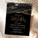 Cette invitation d'anniversaire élégante pour les 21 ans comporte une image aquarelle d'un géode d'agate en noir avec des reflets de faux or. Les mots "21st Birthday" apparaissent en faux or pailleté dans une police manuscrite moderne décorative. Personnalisez-la avec le nom de l'invité d'honneur en texte couleur or et les détails en blanc.