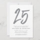 Célébrez 25 ans de mariage (ou autre chose !) avec cette invitation noire et fausses paillettes argentées présentant un grand 25 stylisé. Convient également pour une fête d'anniversaire des 25 ans ou une réunion de classe des 25 ans.