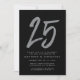 Célébrez 25 ans de mariage (ou autre chose !) avec cette invitation noire et fausses paillettes argentées avec un grand 25 stylisé