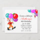 Clown tenant une invitation de fête d'anniversaire en ballons de couleurs vives. Le texte est personnalisable.