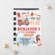 Sonne l'alarme et attrape ton équipement, ton anniversaire de pompier est là ! Invitation vos amis à fêter avec cette super chaude invitation d'anniversaire Fire Truck!