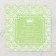 Commencez votre fête à l'heure de l'anniversaire avec l'élégante Invitation d'anniversaire avec une belle couronne de princesse sur un arrière - plan damassé vert clair. Parfait pour une invitation à la fête d'anniversaire de princesse 1er ou tout petit anniversaire de fille. Personnalisez simplement vos informations et vous êtes tous prêts à partir ! Des articles de correspondance tels que timbres-poste d'anniversaire, autocollants de faveur, cartes de remerciements et autocollants de remerciement sont également disponibles dans notre boutique.