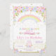 Commencez la fête d'anniversaire de votre enfant par un clin d'oeil avec cette magnifique invitation personnalisée Rainbow ! Avec de jolies aquarelles fleuries, un arc-en-ciel aux couleurs pastel et des détails de parties scintillant en faux or. Personnalisez cette invitation avec le nom de votre enfant, l'âge et les détails de la fête facilement et rapidement, appuyez simplement sur le bouton customiser pour réorganiser et formater le style et l'emplacement du texte. Cette formidable invitation à la licorne fera certainement une impression ! Idéal pour tous les âges !