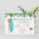 L'invitation à la fête de la plage de la bachelorette tropicale présente une fille blonde couleur eau en maillot de surf et des fleurs tropicales. Détails de l'événement au verso de l'invitation. Peut être customisé pour tout événement.
