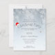 Une belle invitation avec un chapeau de père Noël, un ornement et quelques flocons de neige.