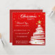 Carte de Noël rouge blanc et or Noël Fête de NoëlInvitation moderne et élégante Fête de Noël avec l'arbre de Noël, les flocons d'or et la neige.
