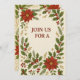 Célébrez les fêtes avec cette élégante invitation à la fête de Noël à deux côtés. Doté d'un arrière - plan parchemin crème orné de poinsettias rouges festives, de saintes sprigs à feuillage persistant et d'accents dorés, l'avant met en valeur les détails de votre événement tandis que le dos décoratif assorti complète le design. Idéal pour les fêtes de Noël, les rassemblements saisonniers et les fêtes d'hiver.