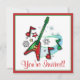 Cet invitation de fête a une guitare de Noël. Pour faire correspondre des objets, tapez "pingouin store rock" dans la barre de recherche Zazzle.