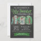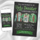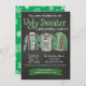 Admission de Noël en pull moche avec trois drôles de pull moches sur un tableau et un arrière - plan de flocon de neige. Vous pouvez facilement customiser ces invitations amusantes de fête de Noël en pull moche pour votre événement en ajoutant simplement vos détails.