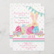 Célébrez Pâques et un anniversaire avec cette adorable invitation. Le pastel, le arrière - plan à points de polka, est orné de drapeaux d'anniversaire, d'oeufs décorés, de fleurs de printemps et bien sûr d'un lapin.La carte est facile à customiser avec votre libellé, police, couleur de police et choix de six types de papier.