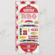 Un barbecue à la bouilloire rouge avec un arrière - plan en bois clair. Cet amusant invitation de fête barbecue est décoré de bannières, de bouteilles de moutarde et de ketchup, de hot-dog sur une fourchette, de plaque de papier, de fourchette et de couteau, de hamburger, de maïs et de jambe de poulet. Le dos de la carte est décoré d'un mignon motif en vichy. Customisez avec votre propre texte. Illustration originale de pj_design / jammydesign.
