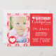 Jolie invitation à photographier sur mesure pour l'anniversaire de la Saint-Valentin rose et rouge. Les détails du coeur et du xoxo. Conception facile à customiser, ajoutez la photo de votre petit et votre texte personnalisé.