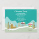 Cet invitation de fête de Noël 5x7 a des arbres de Noël verts et des maisons de quartier recouvertes de neige en bas avec vos informations personnalisables en haut. Conception par Riefka Design