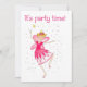 Une invitation à la fête avec une fée, habillée en rose, arrosant de poussière de fée, d'un tableau aquarelle de Judy Adamson. Le verso est laissé vide pour que vous puissiez ajouter les détails du parti.