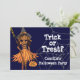 Fun girls Halloween invitation de fête. Avec une mignonne petite fille foncée habillée comme une jolie sorcière avec un citrouille et un bâton de brosse. Personnalisez avec votre nom, les détails du parti, l'adresse et le RSVP. Illustration et conception uniques par Sarah Trett pour www.mylittleeden.com