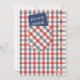 Un design amusant pour une fête masculine ! Sur le devant de l'invitation se trouve une chemise en plaid rouge et bleu contre un arrière - plan blanc avec des boutons. Dans la poche de poitrine est une invitation qui dit "rejoignez-nous pour célébrer".