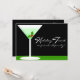 Toast à des amis et à la famille en envoyant ces beaux invitations. Un bon mélange de boisson, de mélange, de nourriture, de danse et de rire est l'essence même d'une fête. Un verre de vin blanc accompagné d'une boisson mélangée à la menthe à l'intérieur avec des baies sucrées sonne délicieux. Le arrière - plan noir et vert lui donne une sensation d'événement nocturne. Tout le texte à l'avant et à l'arrière de ce invitation peut être customisé.