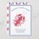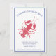 Invitation à thème du homard côtier rouge, blanc et bleu en été. Grand homard rouge sur le visage et homard et motif à rayures bleues sur le dos.