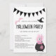 Invitation à la fête d'Halloween de Girly Wicked - Parfait pour votre fête d'Halloween de Wicked! Une mauvaise invitation présente un chaudron de sorcières qui bouillonne avec un sort pour un joyeux anniversaire! Un fantôme, une chauve-souris et un casquette de sorcières complètent également cette invitation amusante dans une palette de couleurs noir et rose. Notre modèle de haute qualité vous permet de personnaliser votre invitation. Si vous désirez customiser plus loin, veuillez utiliser l'option "customiser plus loin". L'invitation fait partie d'une collection. Conçu par Beverly Bainbridge Homespun Cottage Designs E : homespuncottagedesigns@gmail.com
