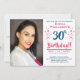 Invitation à la fête du 30e anniversaire avec photo est conçu pour réunir amis et famille pour une fête d'anniversaire spéciale! Cette invitation est décorée de coeurs roses sur un arrière - plan blanc. Pour personnaliser, insérez simplement votre image préférée dans notre modèle, en remplaçant l'exemple. Cliquez sur : FIT et ajustez l'image à droite. Insérez ensuite les détails de votre événement dans notre modèle facile, en remplaçant l'échantillon. L'envers est un arrière - plan rose correspondant.