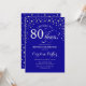 Invitation à la fête du 80e anniversaire. Design élégant avec fausse parties scintillant argent et bleu roi. Salut à 80 ans ! Message-moi si vous avez besoin d'une personnalisation plus poussée.