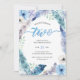 Des plumes et des fleurs d'aquarelle bleues et violettes ornent cette magnifique invitation à la fête du deuxième anniversaire de la naissance du boho avec un dos recouvert de feuilles.