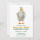 Festive invitation à la fête de Noël avec un canard de citrouille blanc et une couronne de Noël.
