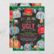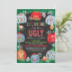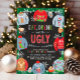 Mangez un verre et soyez moche à votre prochaine fête d'anniversaire à thème, un pull moche ! ! Cette invitation est la meilleure façon pour les invités invitations à votre Noël de vacances ou fête d'anniversaire de Sweater moche. C'est une invitation ludique et festive parfaite pour tous les âges ! Une variété de pull moches encadrent l'invitation avec des tasses de Noël et saint contre un arrière - plan de tableau noir.