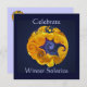 Célébrer le solstice ? Invitation vous êtes amis dans le style avec ce design abstrait coloré en or et bleu brillant, du ciel étoilé le soir, feu tourbillonnant et lumière, et une vague bleue centrale. , Entièrement personnalisable avant et arrière. Il vous suffit de taper ou de nettoyer les cases sous "personnaliser".