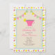 Une invitation à la fête d'anniversaire avec un thème de fête du thé. Le Invitation a une illustration d'un thé rose avec du citron au sommet. Le Invitation est également équipé d'un bouquet solide et en vichy au sommet et d'un arrière - plan motif rose et citron. Personnalisez le texte avec les détails de votre occasion.