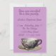 La jolie invitation violette présente une tasse de thé à fleurs au fond du invitation. Les informations sur la fête sont présentées dans un violet plus foncé au-dessus de la tasse de thé. Cette belle invitation fera le bonheur de tous les clients.