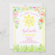 Cette invitation pour une fête d'anniversaire au doux soleil présente un joli soleil à l'aquarelle, des fleurs et de l'herbe, un fond jaune ensoleillé et un texte rose doux. Parfait pour une fête ensoleillée à tout moment de l'année, et le début d'une merveilleuse fête au soleil ! Un joli motif floral au verso est inclus.