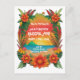 Invitation colorée à une fête reggae avec un coucher de soleil sur une île entouré de fleurs tropicales