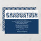 Une plaid universitaire en bleu et blanc épelle le mot "diplôme". Le arrière - plan bleu et blanc solide a un look propre et net, parfait pour une fête de graduation. Convient à tout diplôme ou genre. br/>L'invitation est facile à customiser avec votre libellé, police, couleur de police et choix de six types de papier.