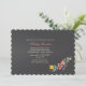 Des fleurs et des fougères colorées et saintes ornent le coin de cette invitation au tableau noir. Bien adapté à toute célébration féminine. Désirez le sexe du bébé en choisissant l'encre rose ou bleue pour votre personnalisation. Vous voulez économiser de l'argent ? Imprimez ce dessin sur le papier d'angle carré de base.