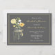 Invitations de douche nuptiale rustique avec une bocale en maçon remplie de fleurs jaunes sur un arrière - plan gris. Aussi disponible en d'autres couleurs. Veuillez contacter pmcustomweddings@hotmail.com pour obtenir des couleurs personnalisées. Obtenez les timbres-poste de la nuptiale du pot de mason correspondants ci-dessous :