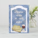 Contre un contexte de tissu bleu de plaid, un châssis de fenêtre blanc fleuri a pains azymes et du vin rouge étés perché sur le rebord, avec les mots, "veuillez venir à notre seder" en manuscrit blanc marquant avec des lettres juste en haut. Du verso, modifiez svp toutes les lignes d'exemple de texte en utilisant l'outil de édition pour refléter les détails de votre situation. Si vous avez besoin de n'importe quelle aide, veuillez ne pas hésiter à me contacter ; Je serais heureux d'aider.