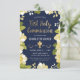 Cette invitation moderne et jolie de la Première Sainte Communion comporte une bordure florale illustrée et les mots "Première Sainte Communion" en or. Le arrière - plan est bleu marine, mais peut être customisé à n'importe quelle couleur. L'arrière du invitation comprend un motif de carrelage en or avec un arrière - plan bleu assorti qui peut également être échangé. Le texte est personnalisable pour votre événement religieux spécial.