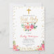 Invitation de la Première Sainte Communion de Fille, avec des confettis d'or et de belles fleurs