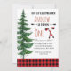 Invitation pour la première fête d'anniversaire de la bûcherie rouge Avec une forêt verte et un style rustique, cette invitation à la bûcheron est parfaite pour votre fête d'anniversaire