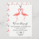 Nous nous enfuyons ! Faire-part de fuite de jeunes mariés avec invitation à la réception avec un couple de flamants roses. Trouvez la papeterie assortie dans notre boutique.