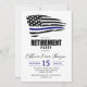 Invitation à la retraite policière personnalisée Célébrez une carrière distinguée avec notre invitation à la retraite policière, Le design présente un thème patriotique du drapeau américain pour honorer l'occasion.