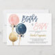 Frère ou Soeur Genre révéler invitation baby shower, bleu marine et rose ballons floraux